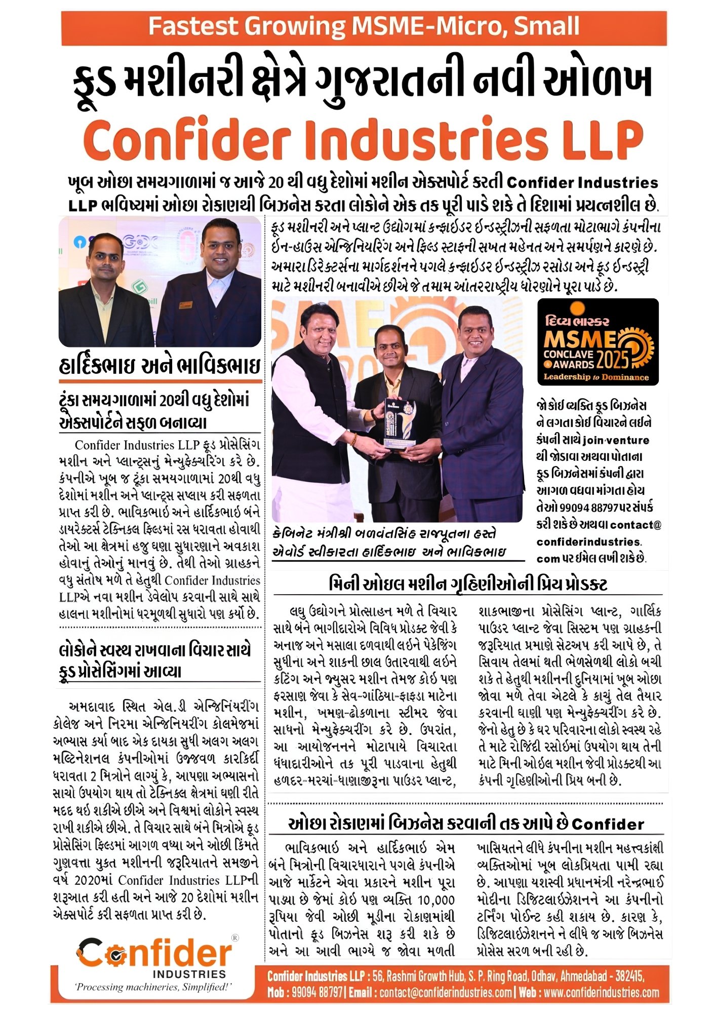 Fastest Growing MSME in Gujarat by Divya Bhaskar