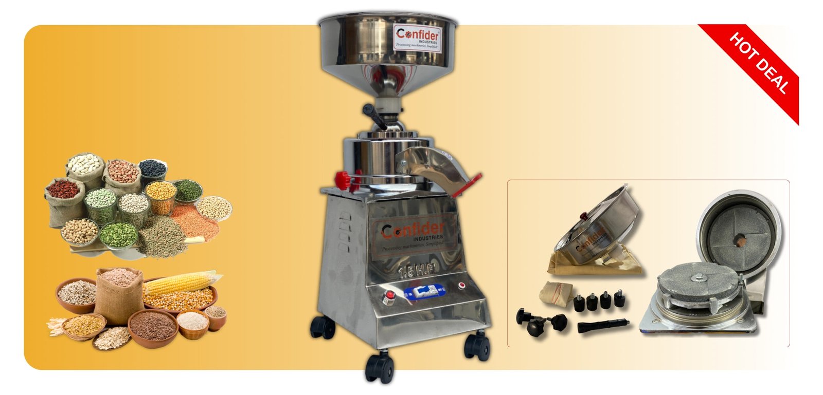 - Confider Industries manufactures quality Atta Chakki that grinds flour in an efficient way.