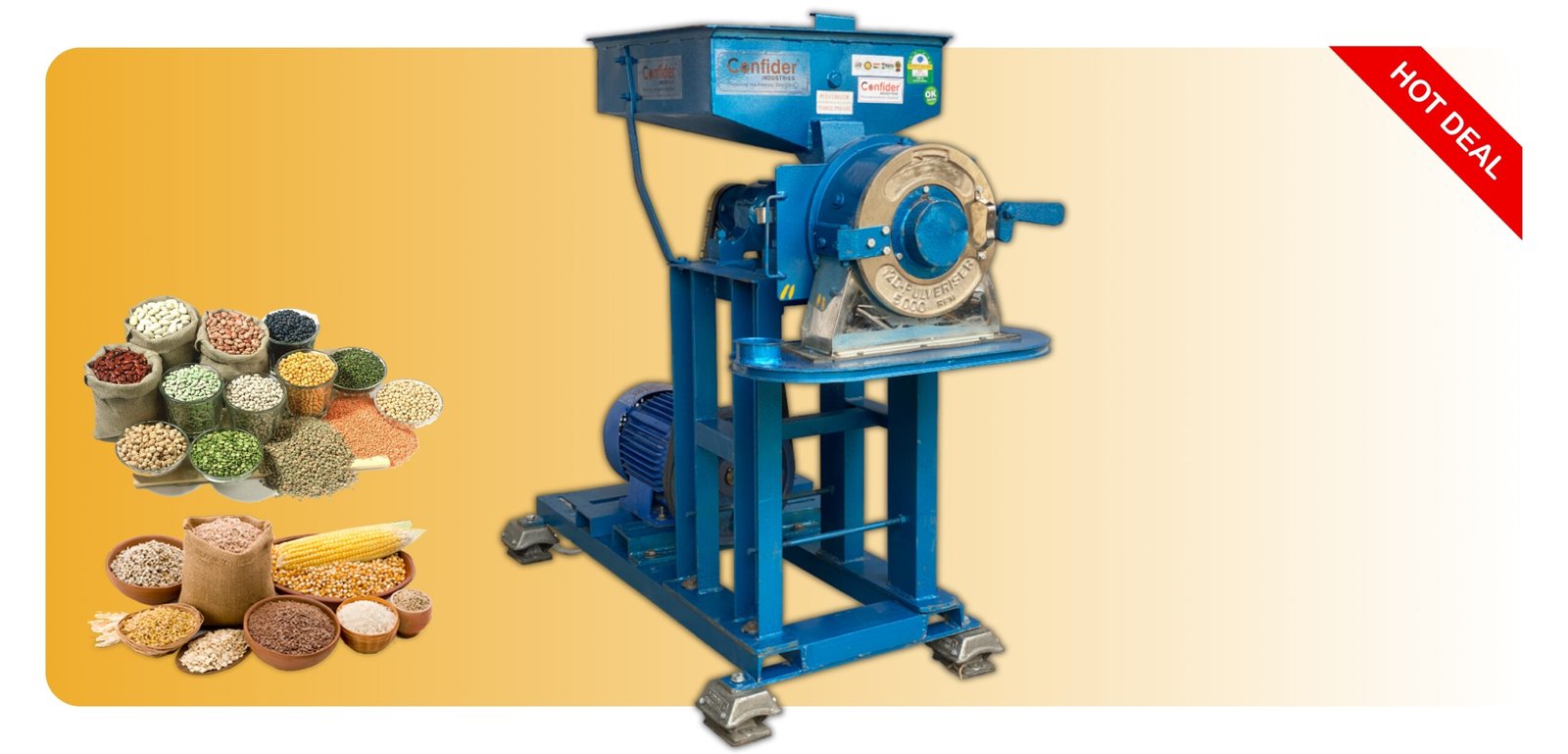 - Confider Industries manufactures a quality Pulverizer Machine which can grind all types of dry grains and millets in an efficient way.