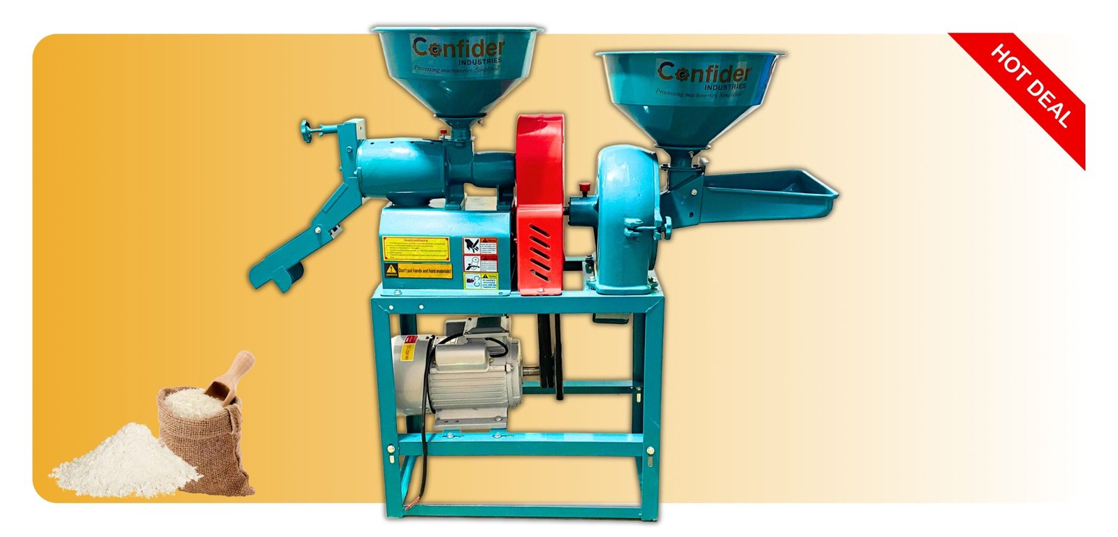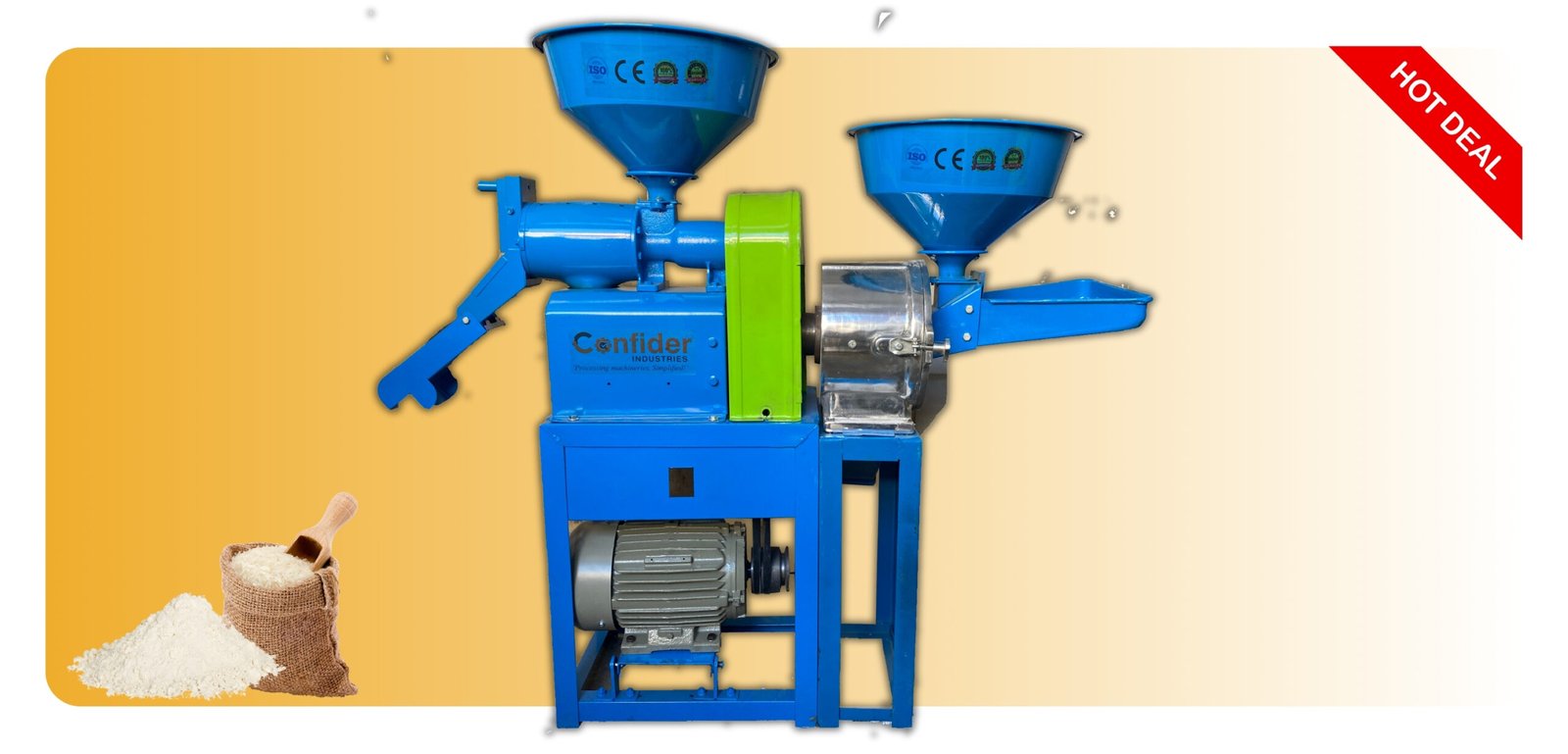 Confider industries manufactures Rice Grinder and Dehusker machines. You can call on +91 9909998977 for the price of a Rice Mill that specifically caters your needs. The team will guide you for any query regarding purchase of the Automatic Spice and Grains Grinding Machine with the best price.