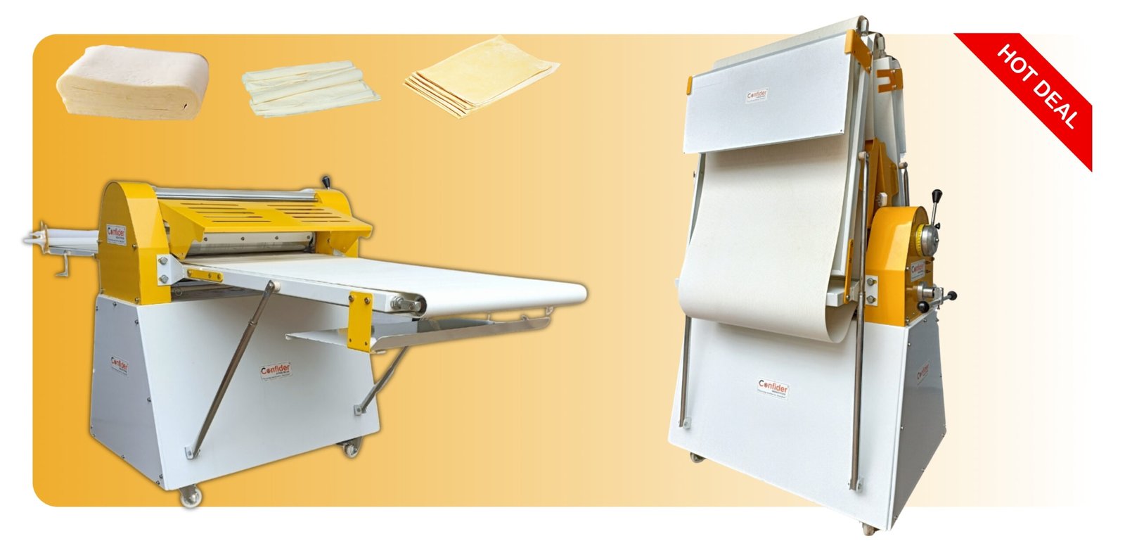 Confider industries manufacture Dough Sheeter Machines. You can call on +91 9909998977 for the price of a Dough Sheeter Machine that specifically caters your needs. The team will guide you for any query regarding purchase of the Dough Sheeter Machine with the best price.