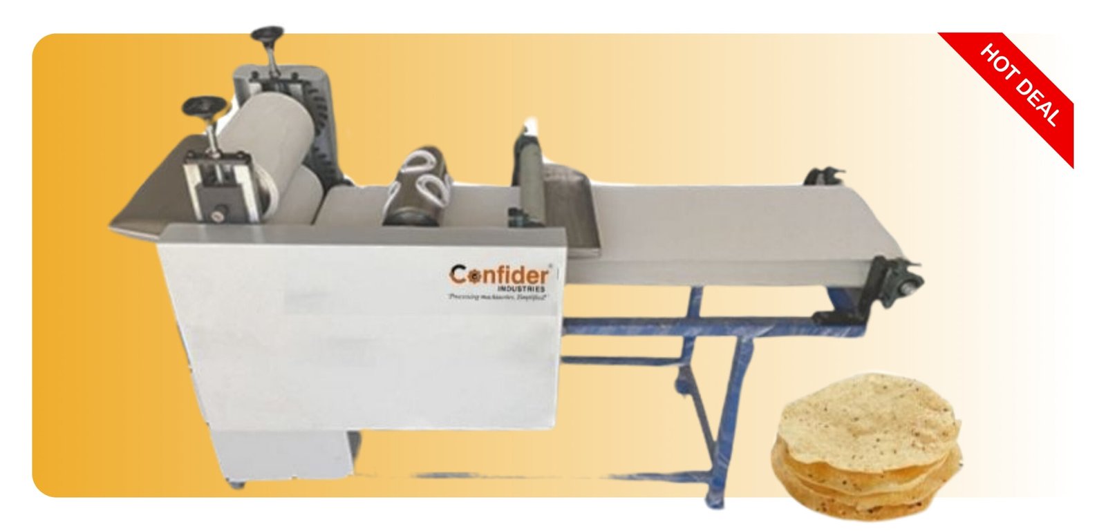 - Confider Industries manufactures a quality Papad Making Machine which makes the papad in an efficient way.