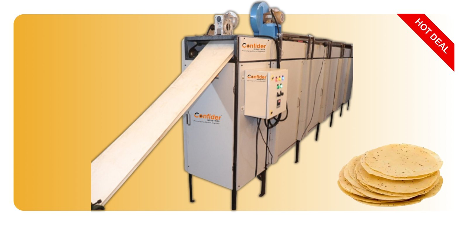 - Confider Industries manufactures a quality Papad Dryer Machine which makes the papad in an efficient way.