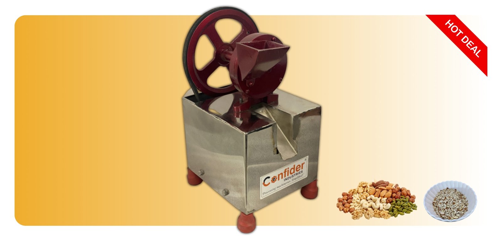 - Confider Industries manufactures a quality Dryfruit Cutter Machine which cuts the dryfruit in an efficient way.