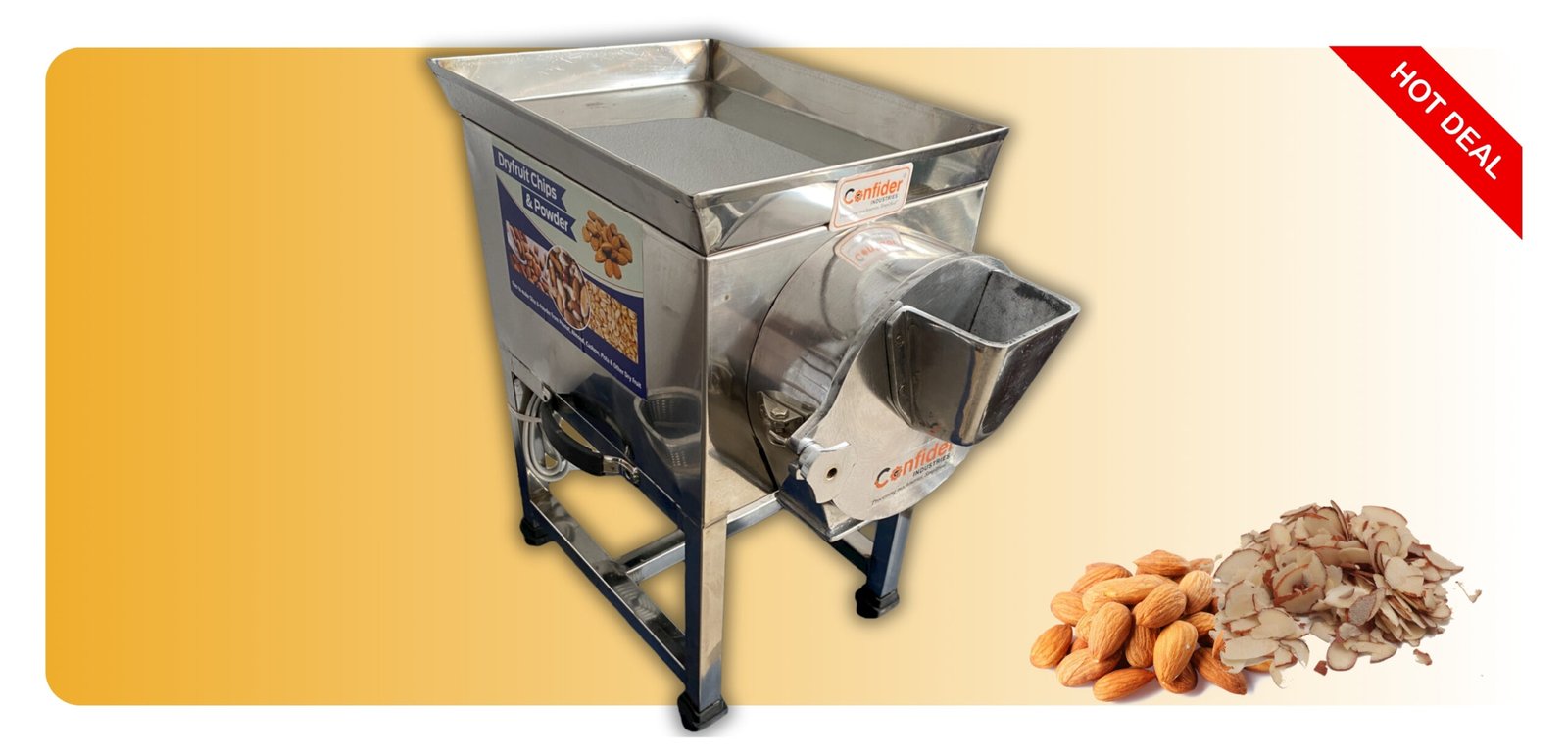 Confider industries manufactures Dry fruit slicing and powder Machines. You can call on +91 9909998977 for the price of a Dryfruit slicer that specifically caters your needs. The team will guide you for any query regarding purchase of the Automatic Dryfruit Machine with the best price.