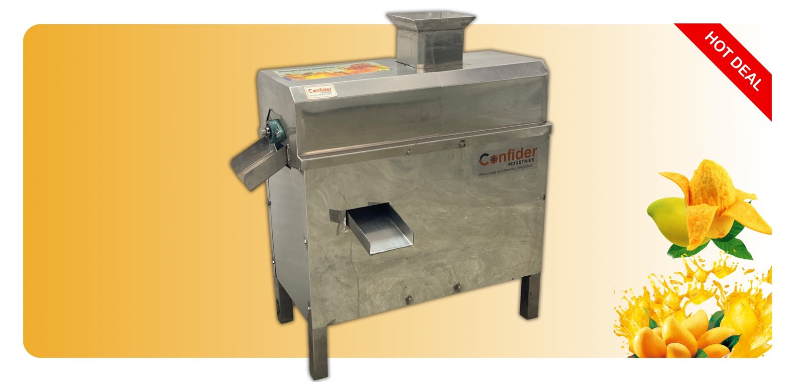 - Confider Industries manufactures a quality Mango Pulper Machine which extracts the pulp in an efficient way.