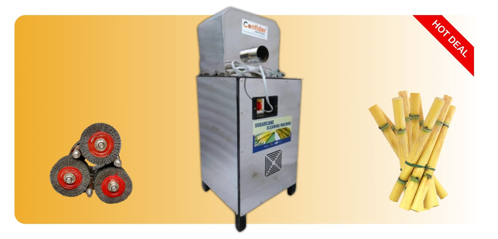 - Confider Industries manufactures a quality Sugarcane Cleaning Machine which extracts the juice and chills in an efficient way.