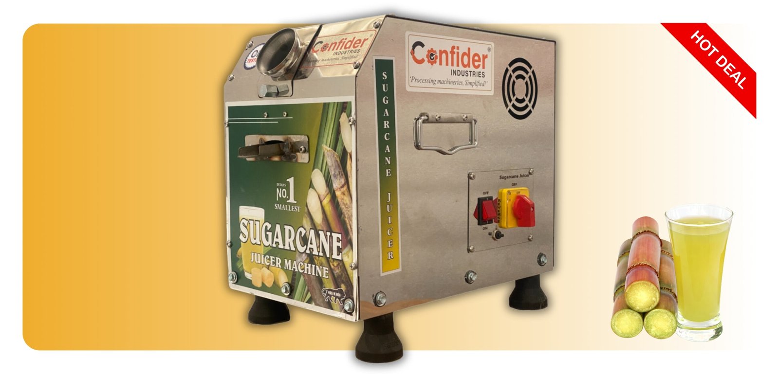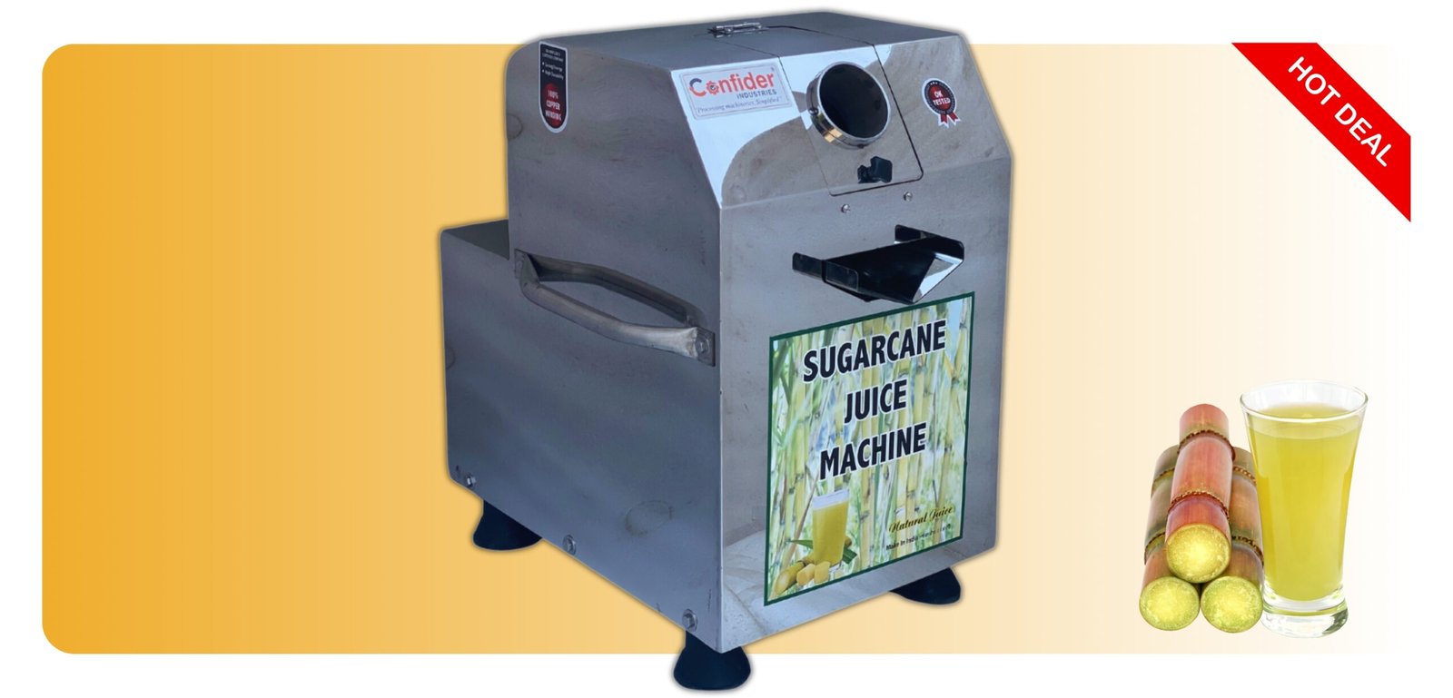 Confider industries manufactures Sugarcane Juice Machines. You can call on +91 9909998977 for the price of a Sugarcane Juicer that specifically caters your needs. The team will guide you for any query regarding purchase of the Automatic Sugarcane Juicer Machine with the best price.