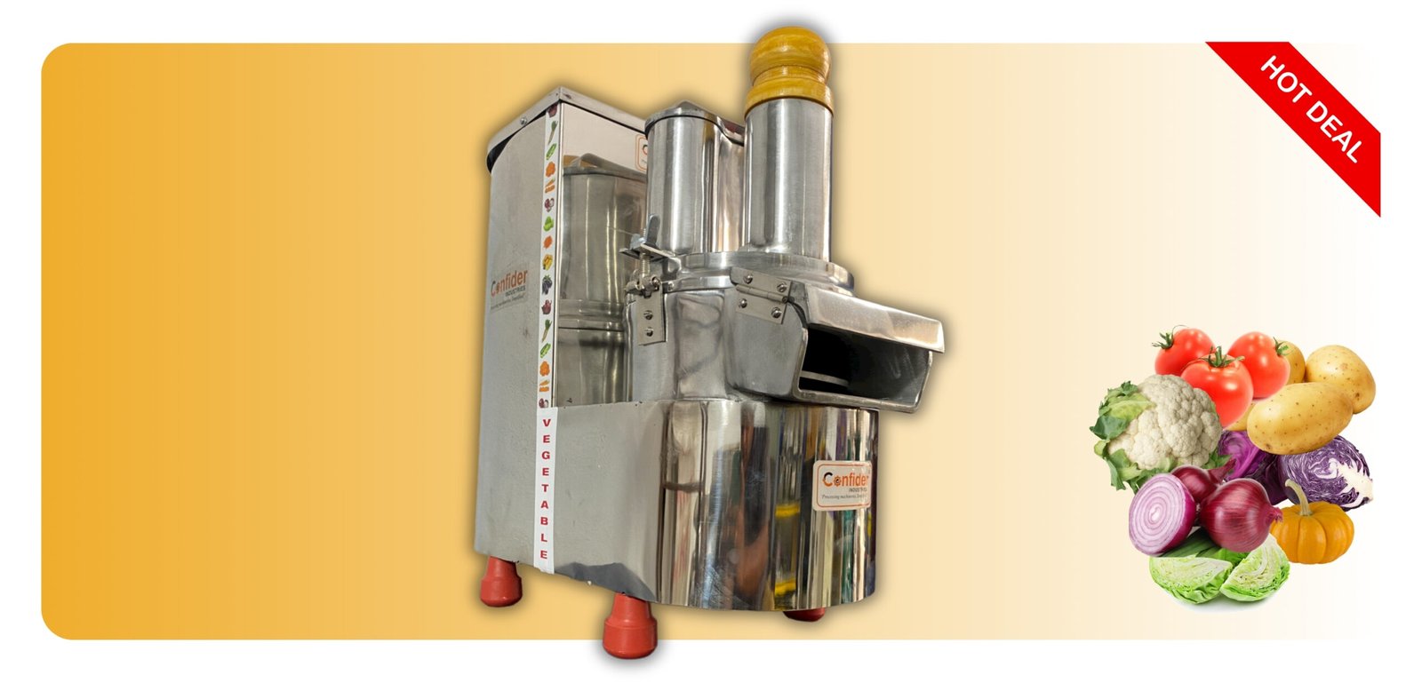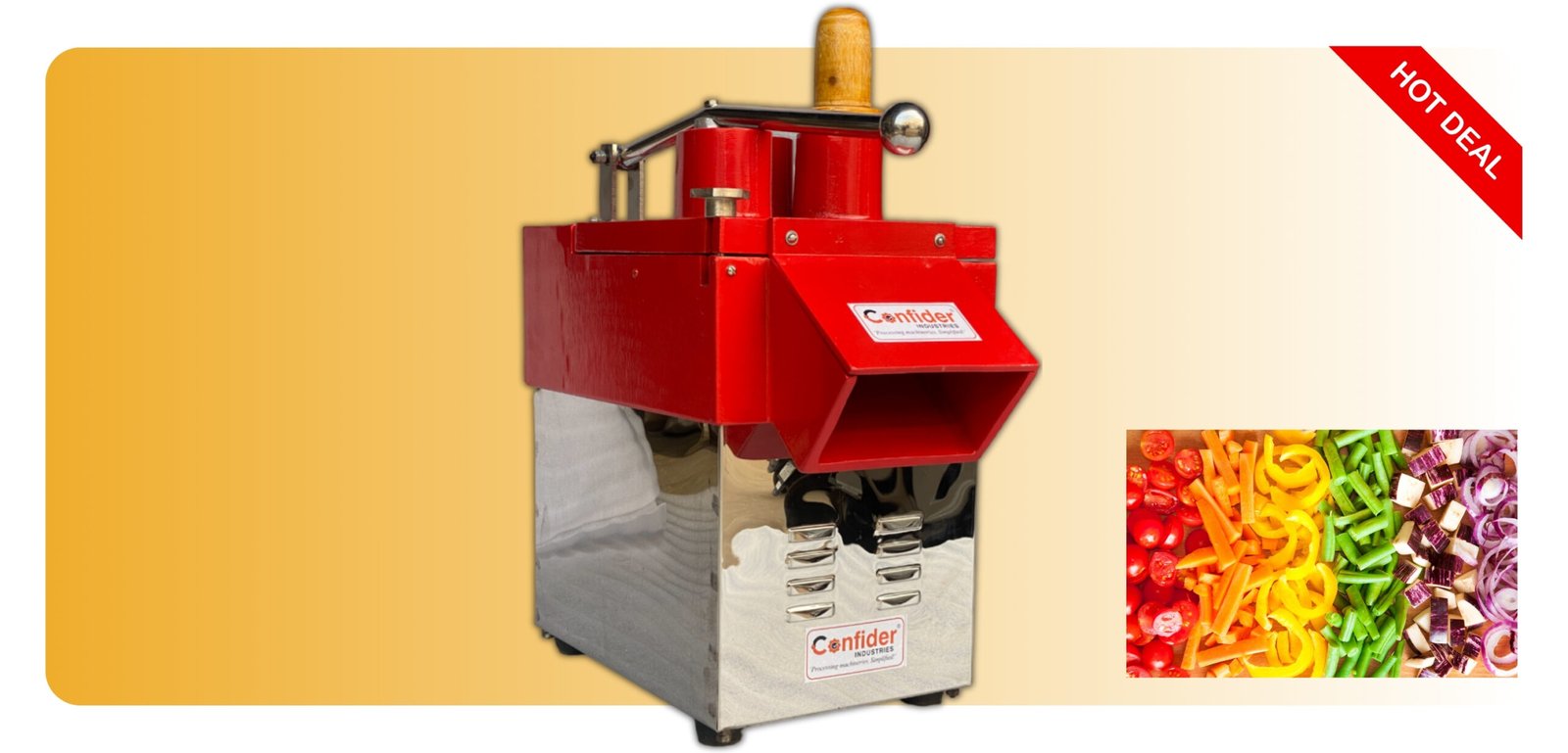 Confider industries manufactures Vegetable Slicing, Chopping, Shredding, Dicing and Cutting Machine. You can call on +91 9909998977 for the price of a Vegetable Cutter Machine that specifically caters your needs. The team will guide you for any query regarding purchase of the Automatic Vegetable Cutter Machine with the best price.