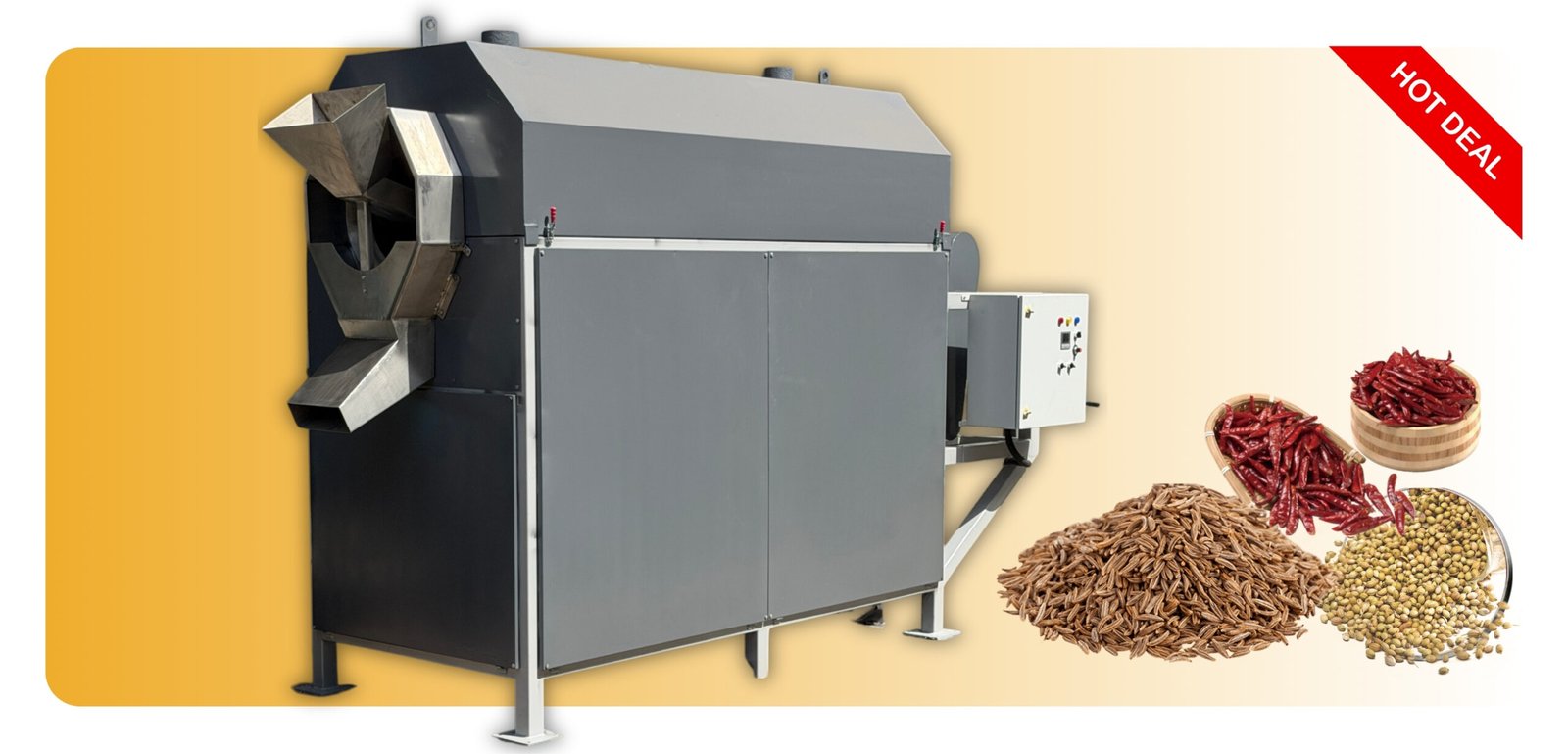 - Confider Industries manufactures a quality Horizontal Drum Roasting Machine which can roast spices, grains and snacks in an efficient way.