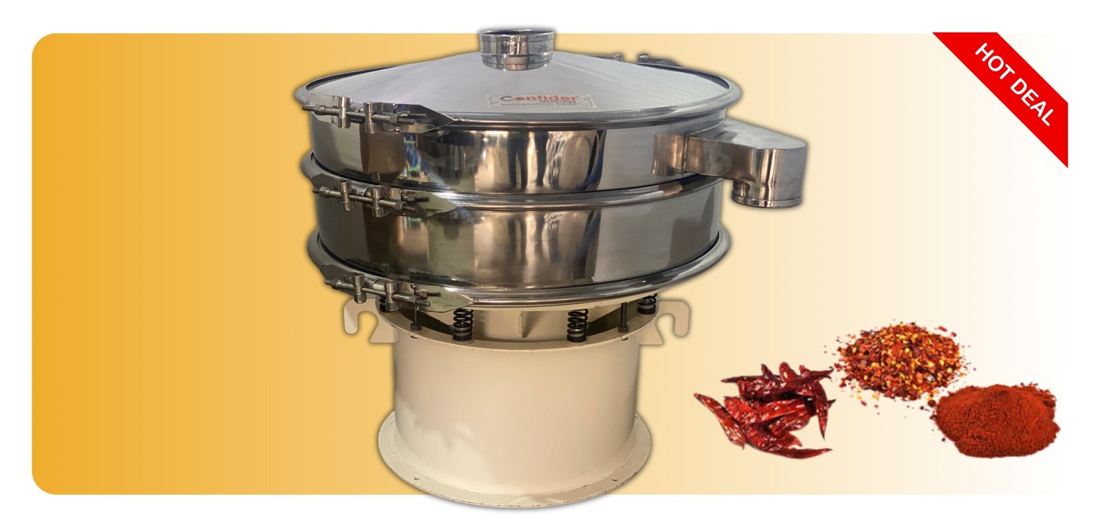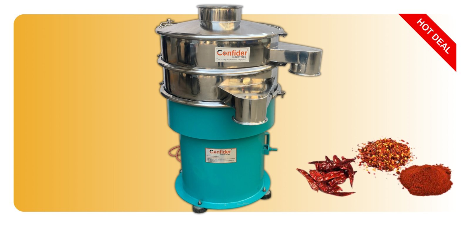• Confider Industries manufactures a quality Vibro Shifter which can sieve spices, grains and other powders in an efficient way.